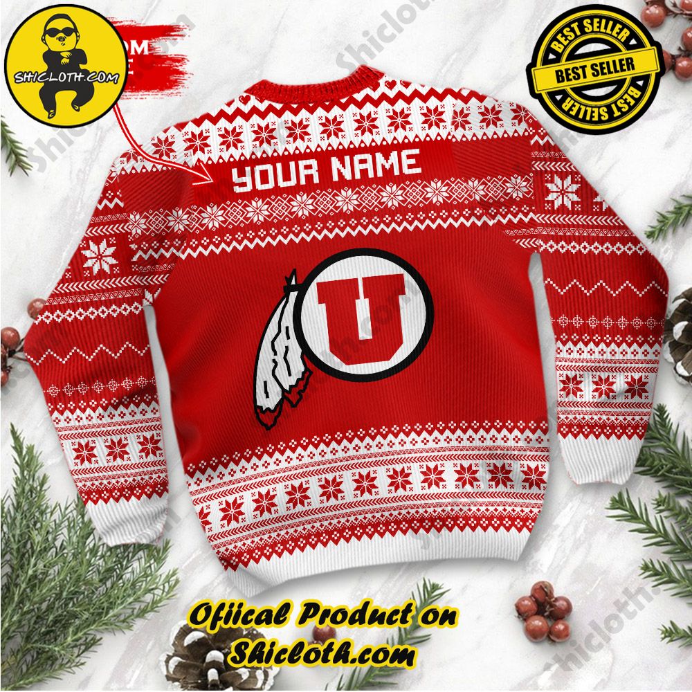 NCAA Utah Utes Grinch Custom Name Ugly Christmas Sweater