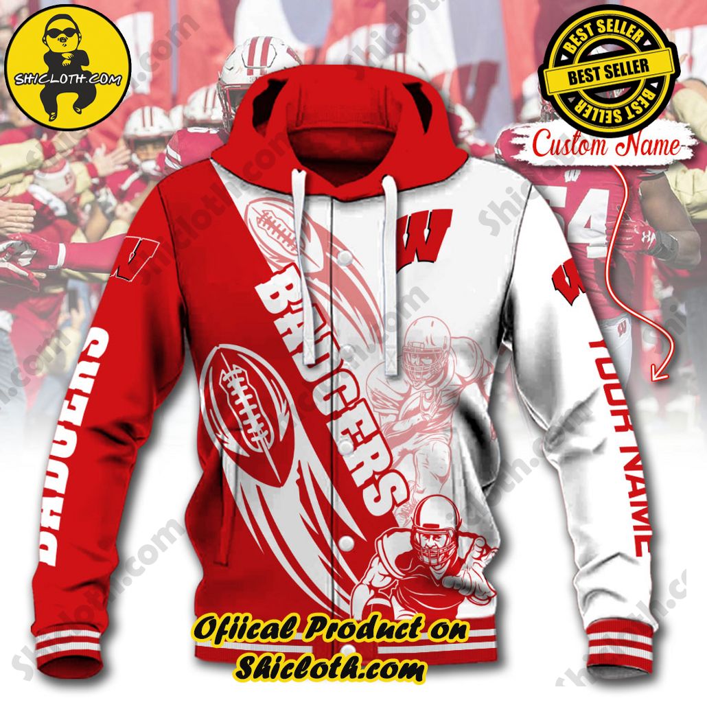 Product Information : NCAA Wisconsin Badgers Custom Name Baseball Jacket Hoodie