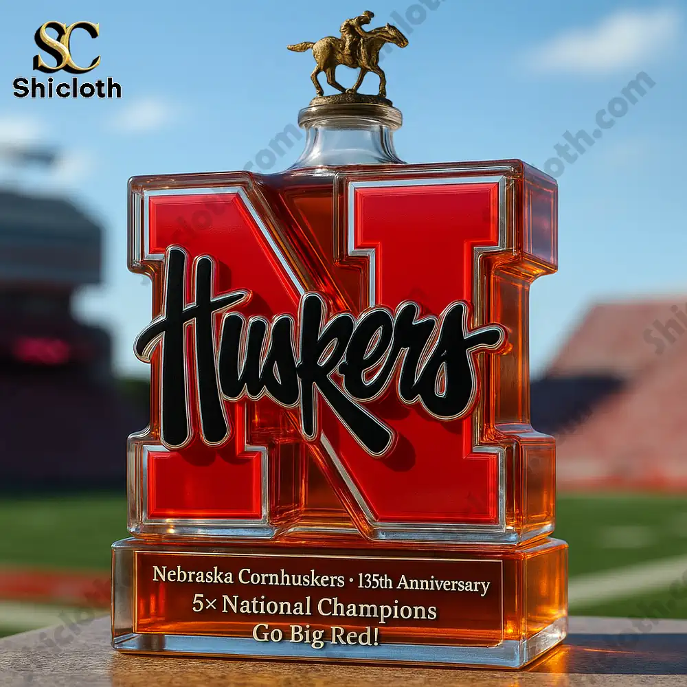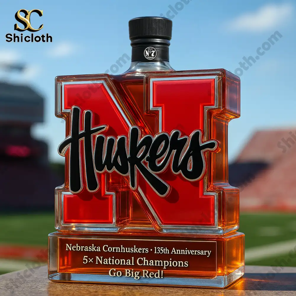 Overview Of Nebraska Cornhuskers 136th Commemorative Whiskey Bottle