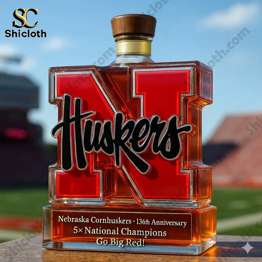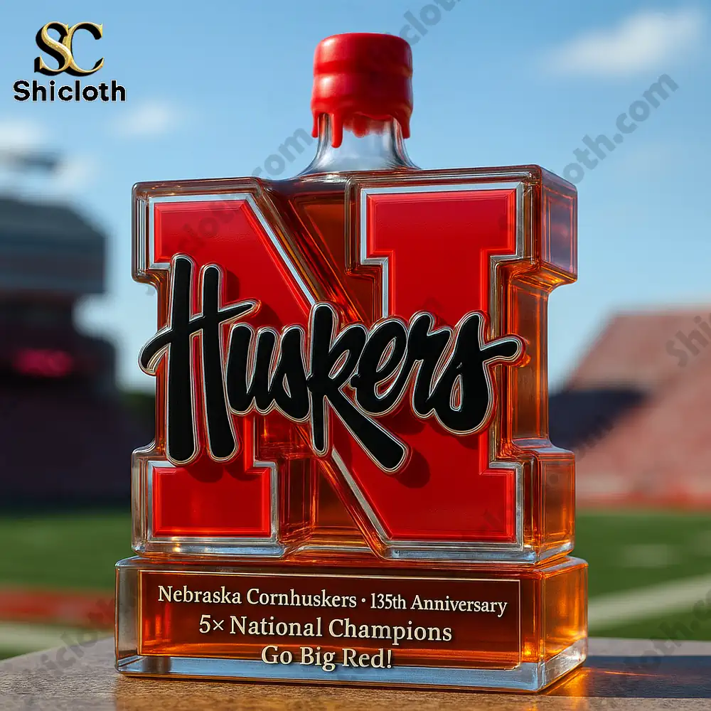 Product Information: Nebraska Cornhuskers 136th Commemorative Whiskey Bottle