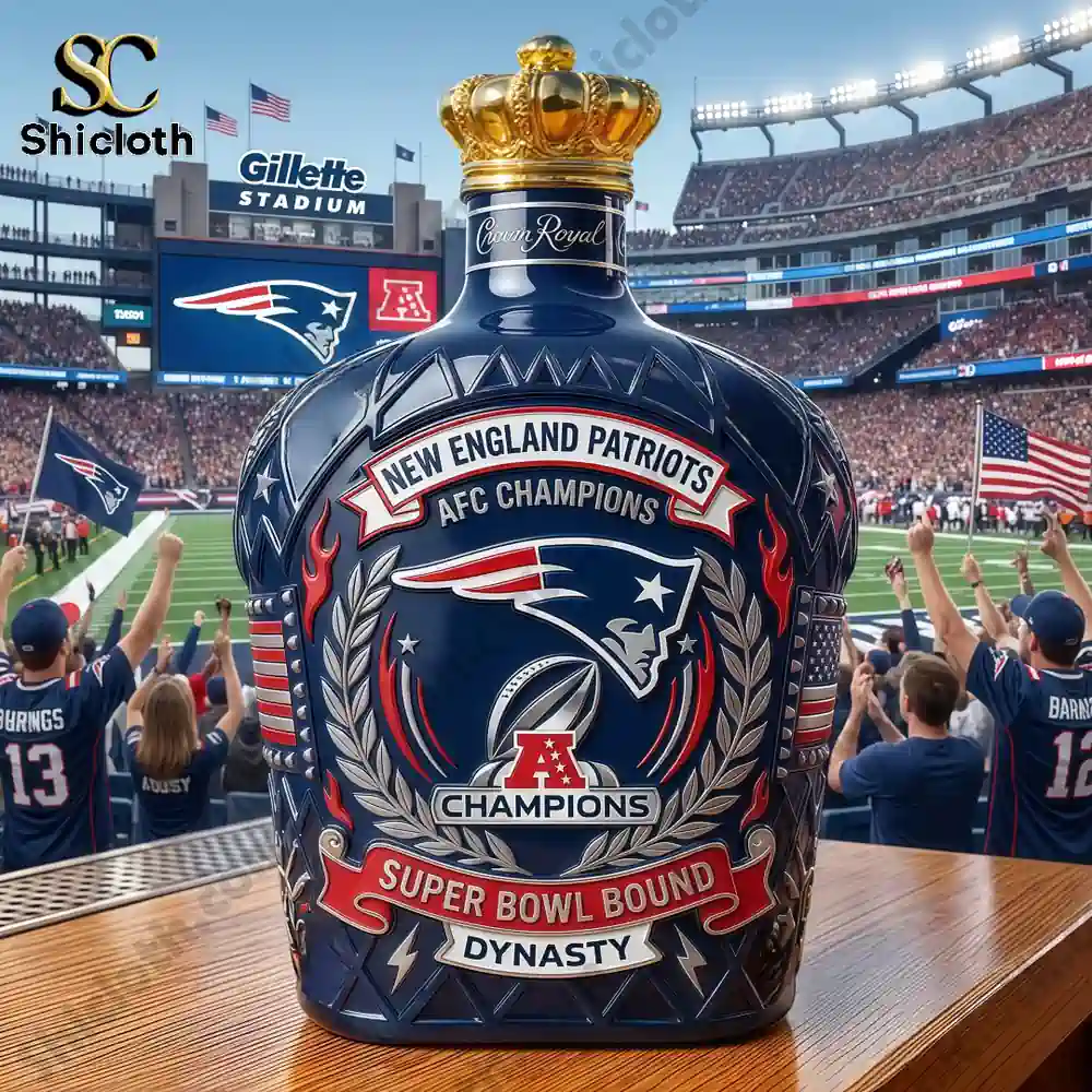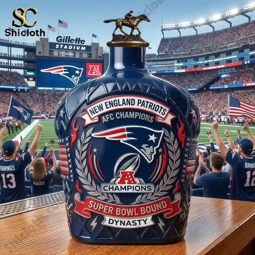Exquisite Craftsmanship of the New England Patriots AFC Champions Super Bowl Bound Dynasty Whiskey Bottle
