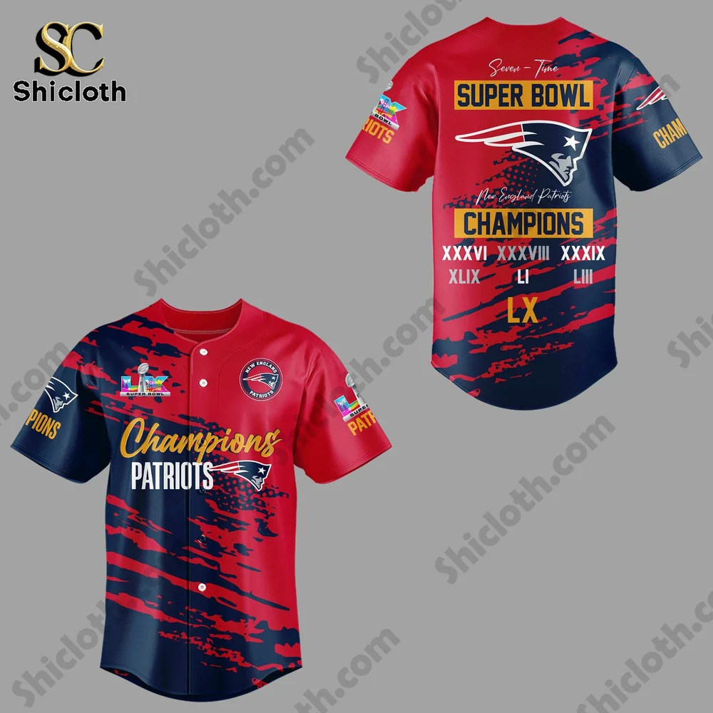 Celebrating a historic seventh title, the New England Patriots Champions Super Bowl LX 2026 Baseball Jersey is the ultimate tribute for fans who want to wear their pride. This jersey combines a bold aesthetic with high-performance fabric, making it a standout piece for victory parades or casual game days.