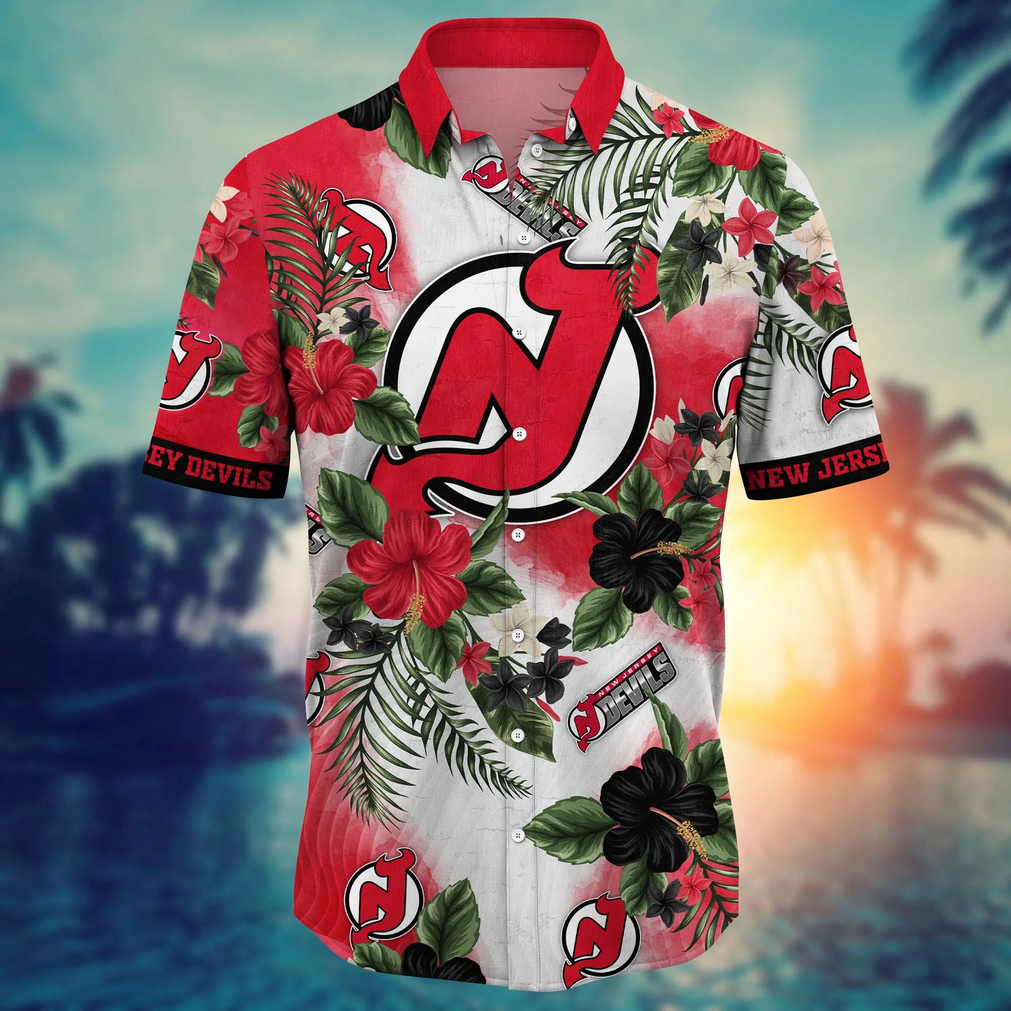 Information of New Jersey Devils NHL Hawaiian Shirt Pool Daystime Aloha Shirt: