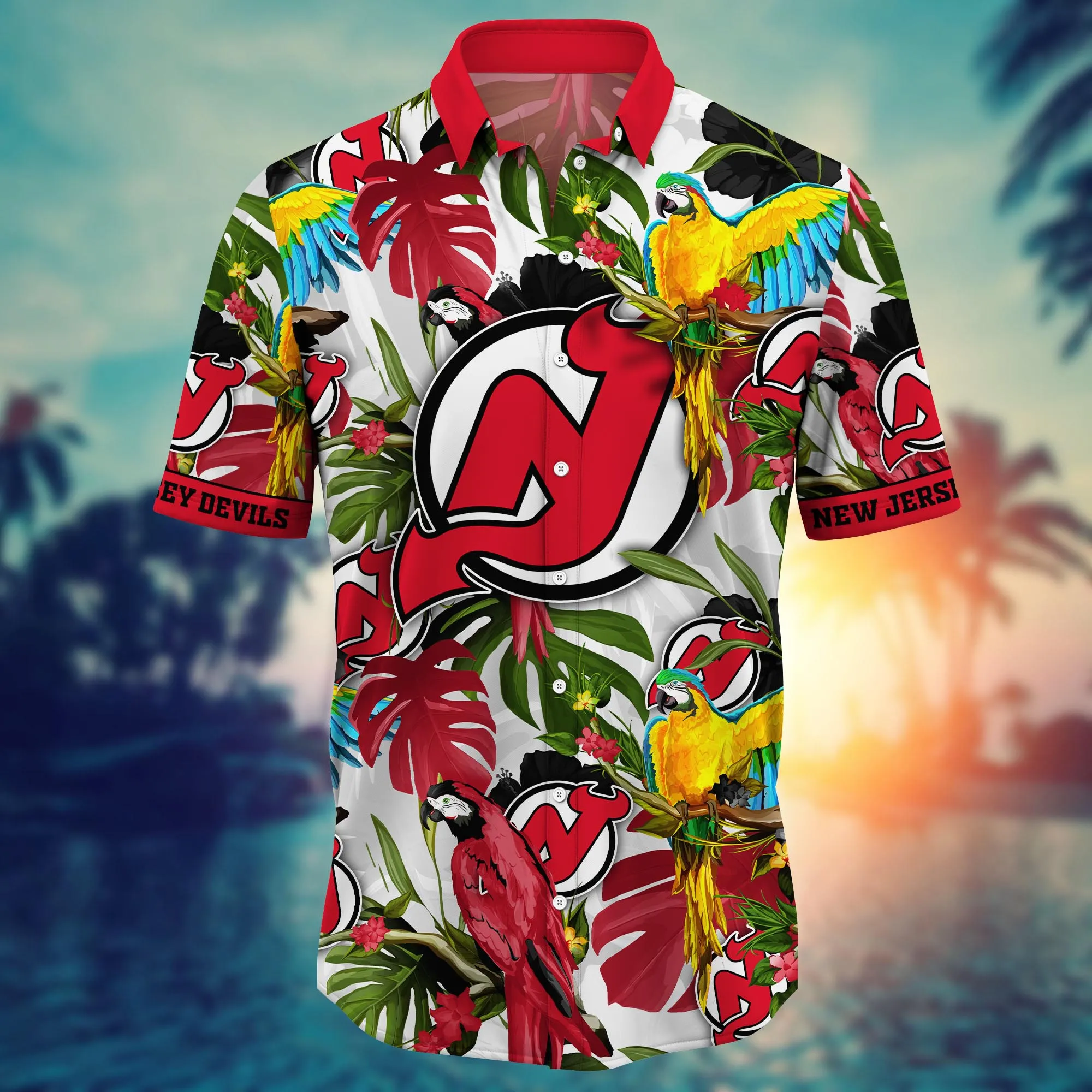 Introducing the ultimate summer wardrobe staple: our New Jersey Devils Hawaiian Shirt! Crafted with the finest fabrics, this Aloha shirt is designed to keep you cool and comfortable during the warm season. Its vibrant, eye-catching print proudly displays the iconic Devils logo, making it a must-have for any loyal fan. Not only is this shirt stylish, but it’s also incredibly affordable, offering the best quality at a price that won’t break the bank. Based in the United States, we ship our products worldwide, ensuring that every Devils enthusiast can show their team spirit wherever they go.