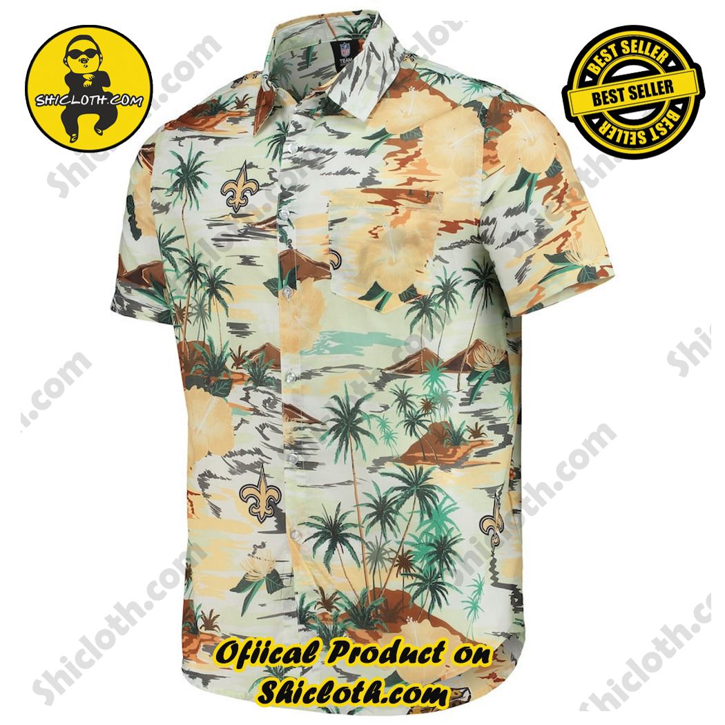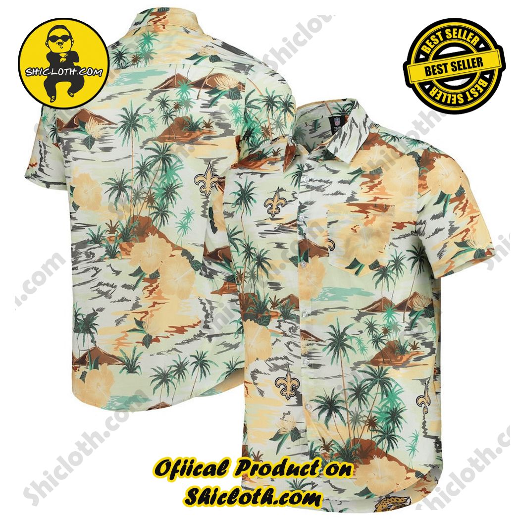 New Orleans Saints Cream Paradise Floral Button-Up Hawaiian Shirt