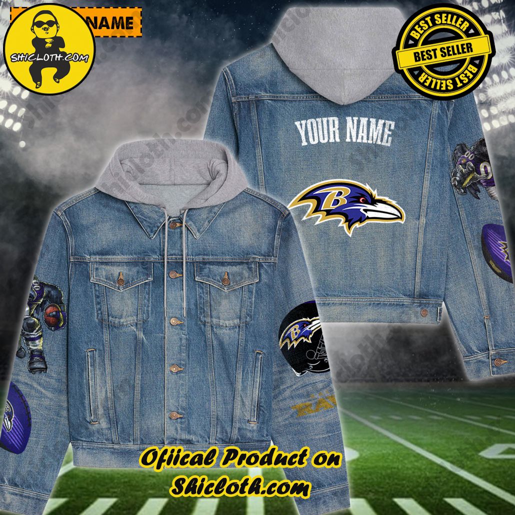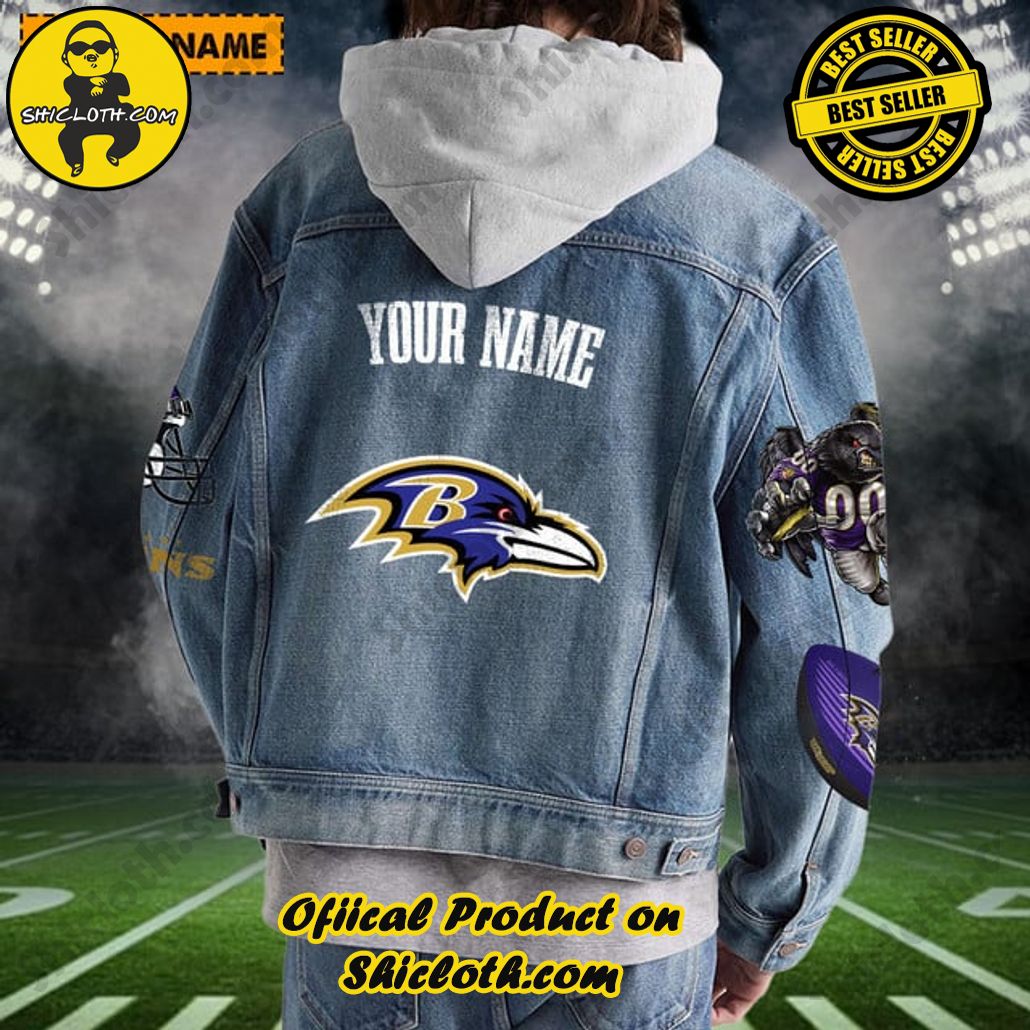 Introduction of The New Personalized Baltimore Ravens Mascot Hooded Denim Jacket For Fan