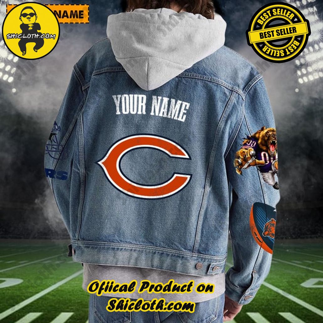 Introduction of The New Personalized Chicago Bears Mascot Hooded Denim Jacket For Fan
