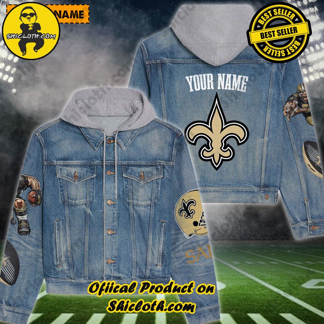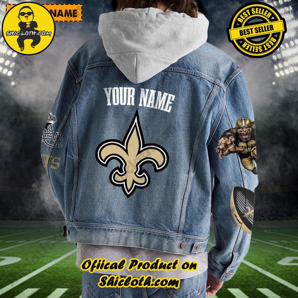 New Personalized New Orleans Saints Mascot Hooded Denim Jacket For Fan