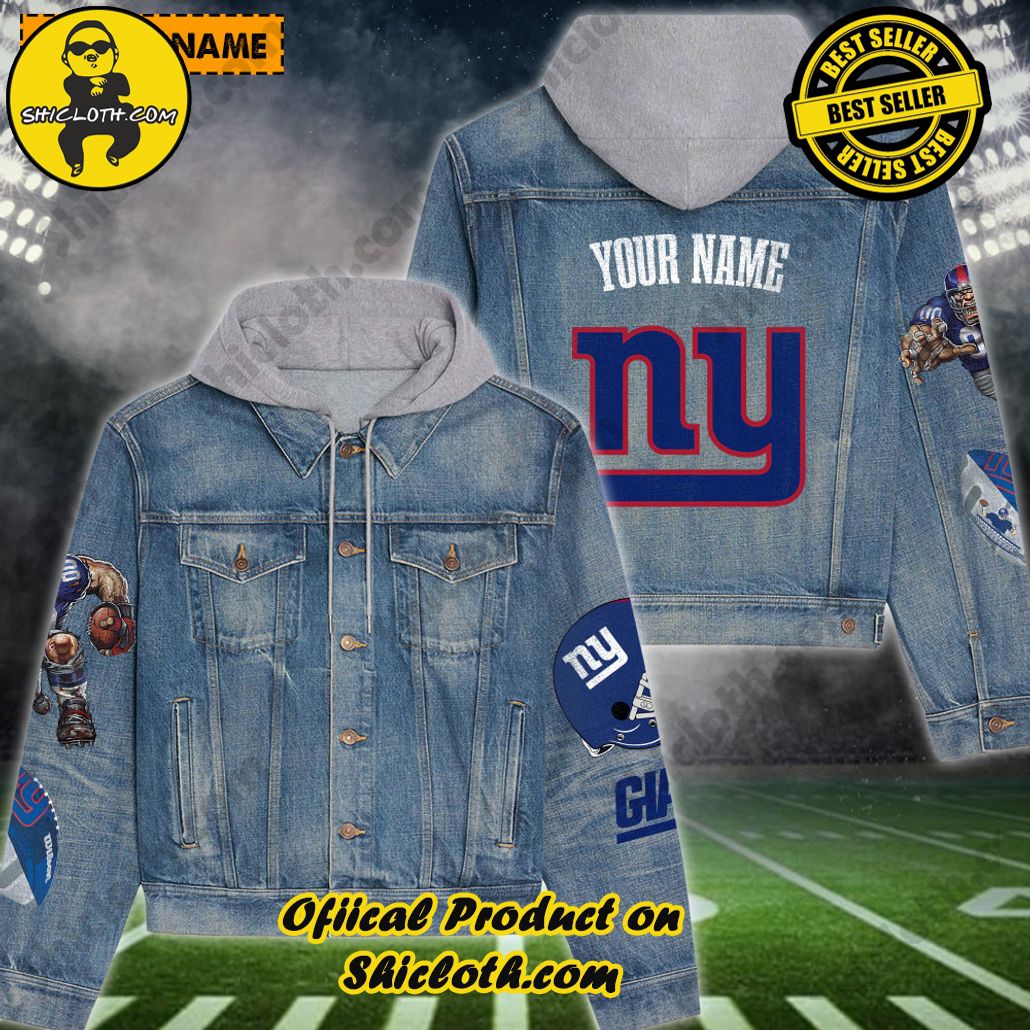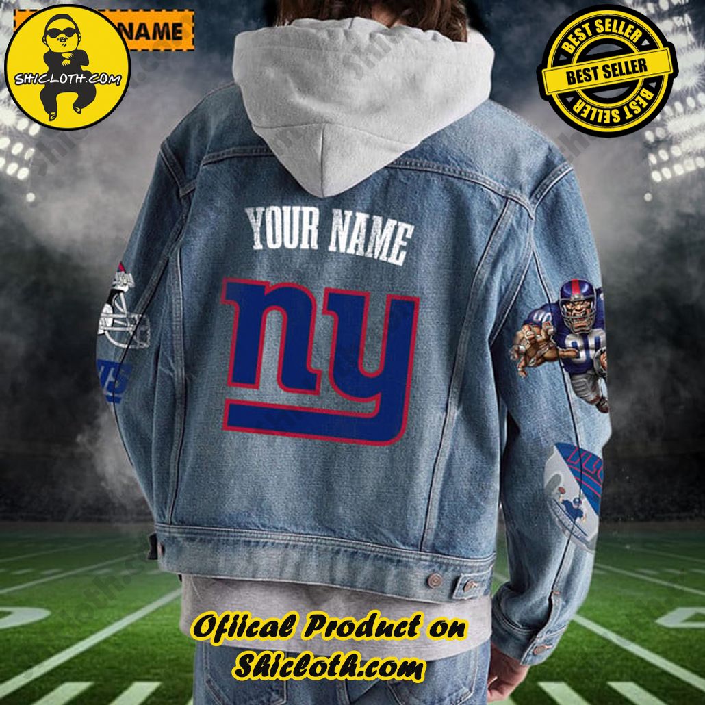 Introduction of The New Personalized New York Giants Mascot Hooded Denim Jacket For Fan