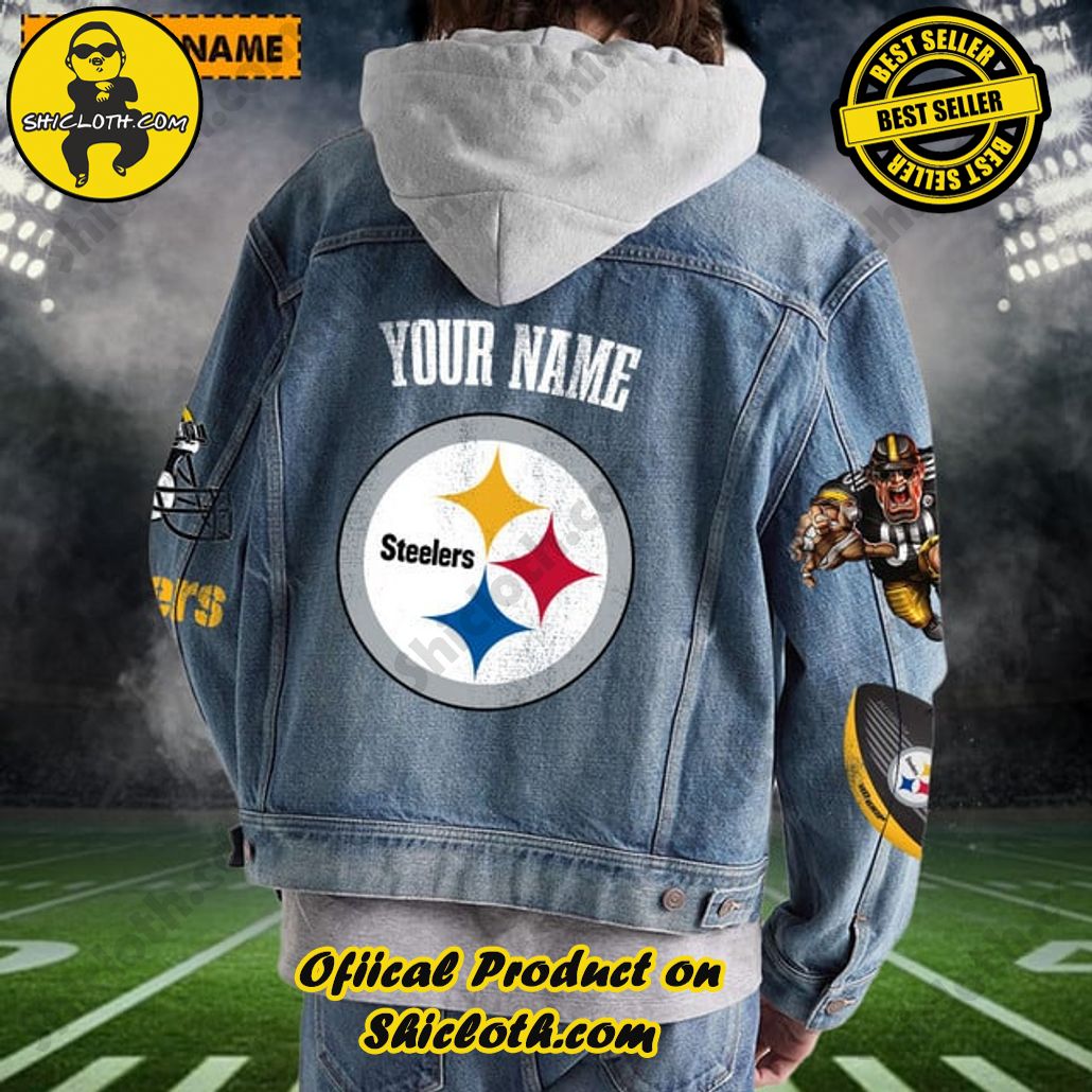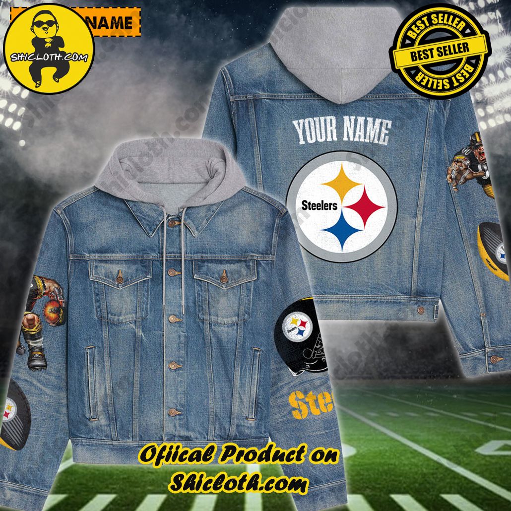 Introduction of The New Personalized Pittsburgh Steelers Terrible Towel 50th Anniversary Mascot Hooded Denim Jacket For Fan