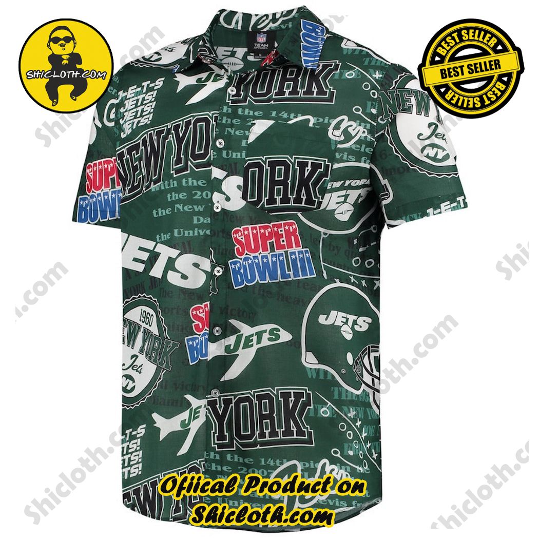 - Suitable for special occasions such as Christmas, birthday, celebration, housewarming gift. New York Jets Green Thematic Button-Up Hawaiian Shirt