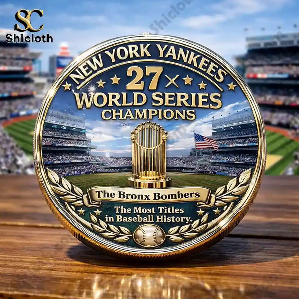 The craftsmanship on this coin is truly remarkable, featuring a polished high-quality metal base that ensures it will last as a family heirloom. On the reverse side, you will find a vibrant, full-color tribute to the 27-time World Series Champions, complete with a golden Commissioner’s Trophy standing tall on the field. Every small detail, from the intricate laurel wreath border to the “Bronx Bombers” ribbon, is designed to capture the prestige of the winningest team in baseball history.