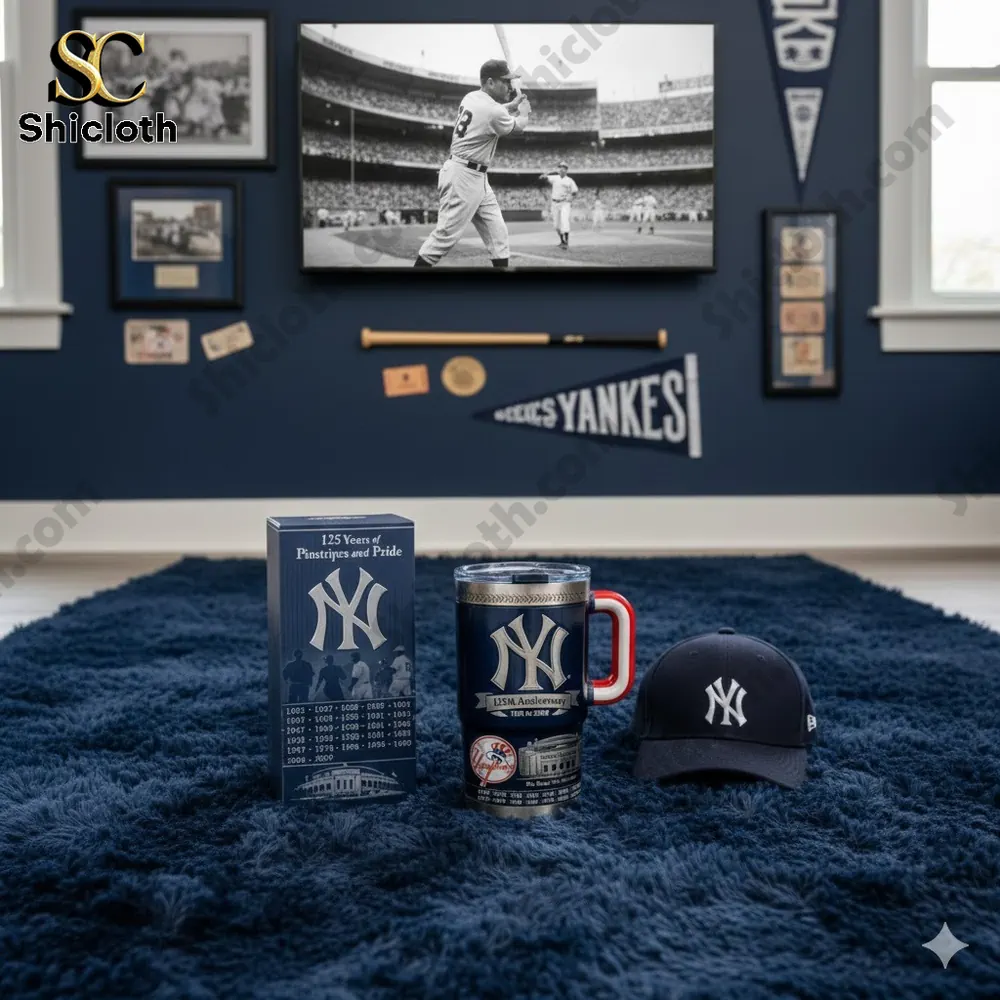 If you are a die-hard baseball fan looking for the ultimate way to celebrate the Bronx Bombers, the New York Yankees 125th Anniversary Tumbler is a true collector’s masterpiece. This stunning navy blue vessel features a premium double-wall stainless steel construction, ensuring your drinks stay icy cold during hot summer doubleheaders or steaming hot during chilly postseason nights. The design is packed with intricate details, from the iconic silver-embossed NY logo and the “125th Anniversary 1901 to 2026” banner to the detailed engraving of the legendary Yankee Stadium, known as “The House That Ruth Built.” It even includes a comprehensive list of World Series championship years etched into the base, making it a portable history book of pinstripe pride.