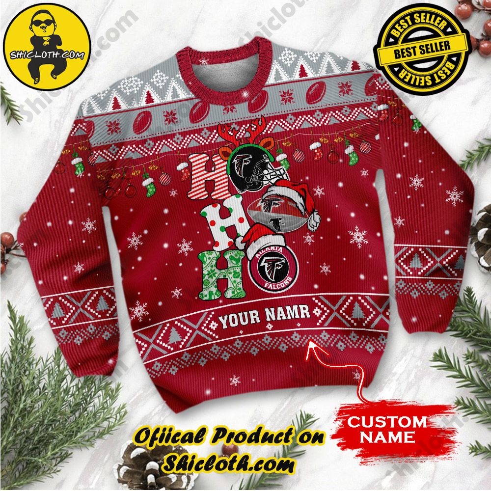 KEY FEATURES: NFL Atlanta Falcons Ho Ho Ho Custom Name Ugly Christmas Sweater