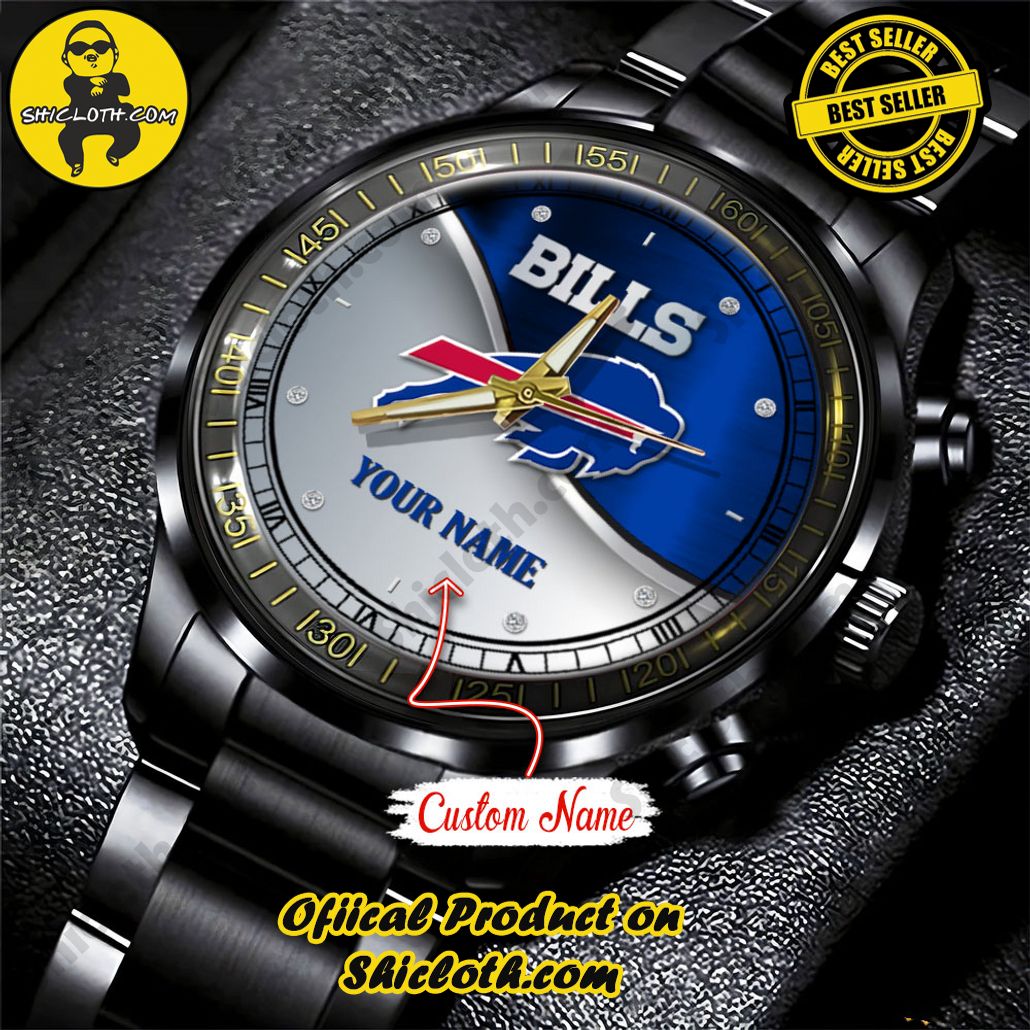 Introducing the NFL Buffalo Bills Custom Name Stainless Steel Watch by Shicloth, a timeless accessory that combines sophistication, durability, and style in one sleek package.
