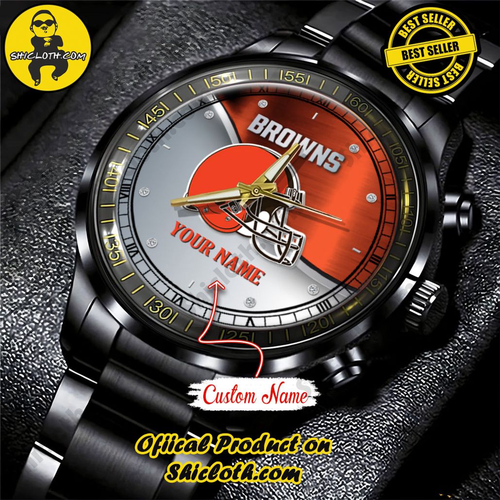Introducing the NFL Cleveland Browns Custom Name Stainless Steel Watch by Shicloth, a timeless accessory that combines sophistication, durability, and style in one sleek package.