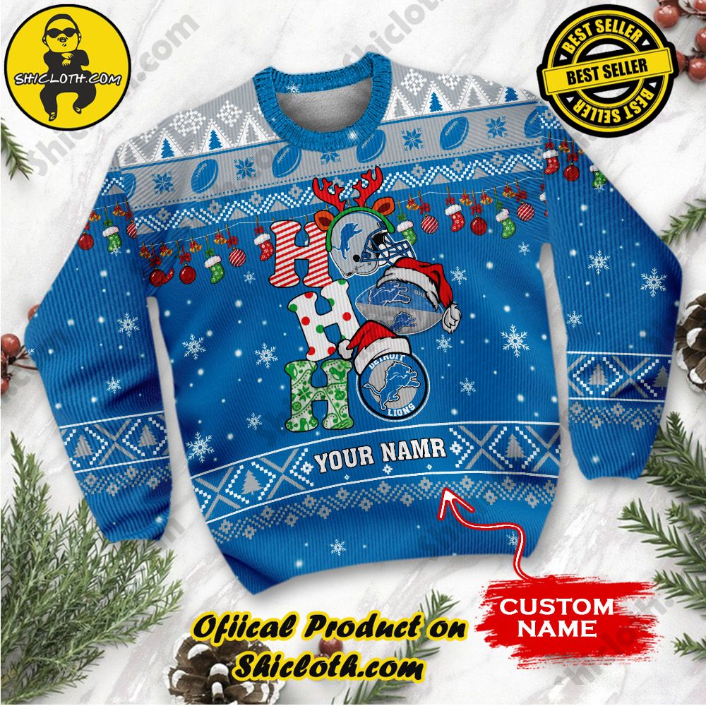 KEY FEATURES: NFL Detroit Lions Ho Ho Ho Custom Name Ugly Christmas Sweater