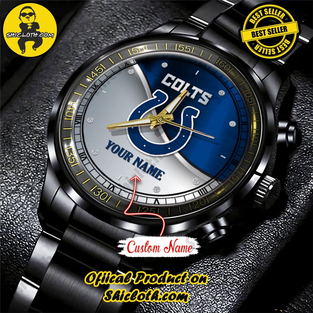 Introducing the NFL Indianapolis Colts Custom Name Stainless Steel Watch by Shicloth, a timeless accessory that combines sophistication, durability, and style in one sleek package.