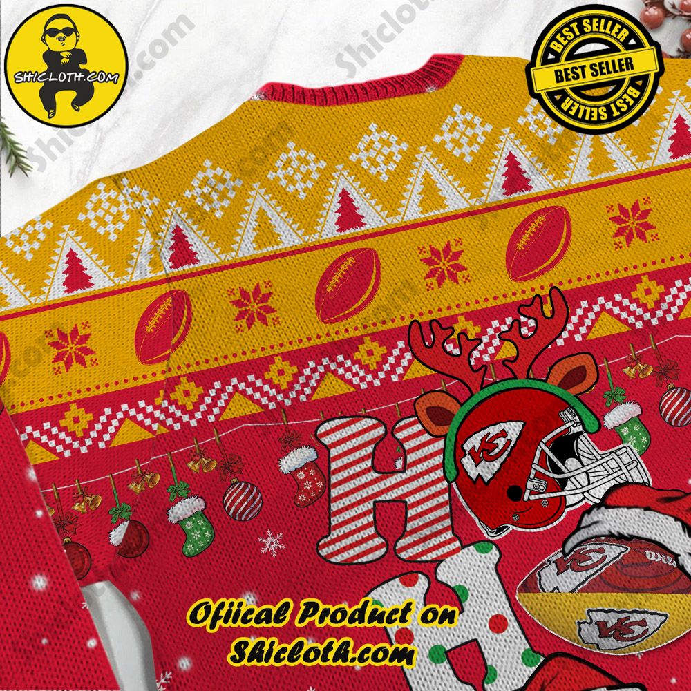 KEY FEATURES: NFL Kansas City Chiefs Ho Ho Ho Custom Name Ugly Christmas Sweater