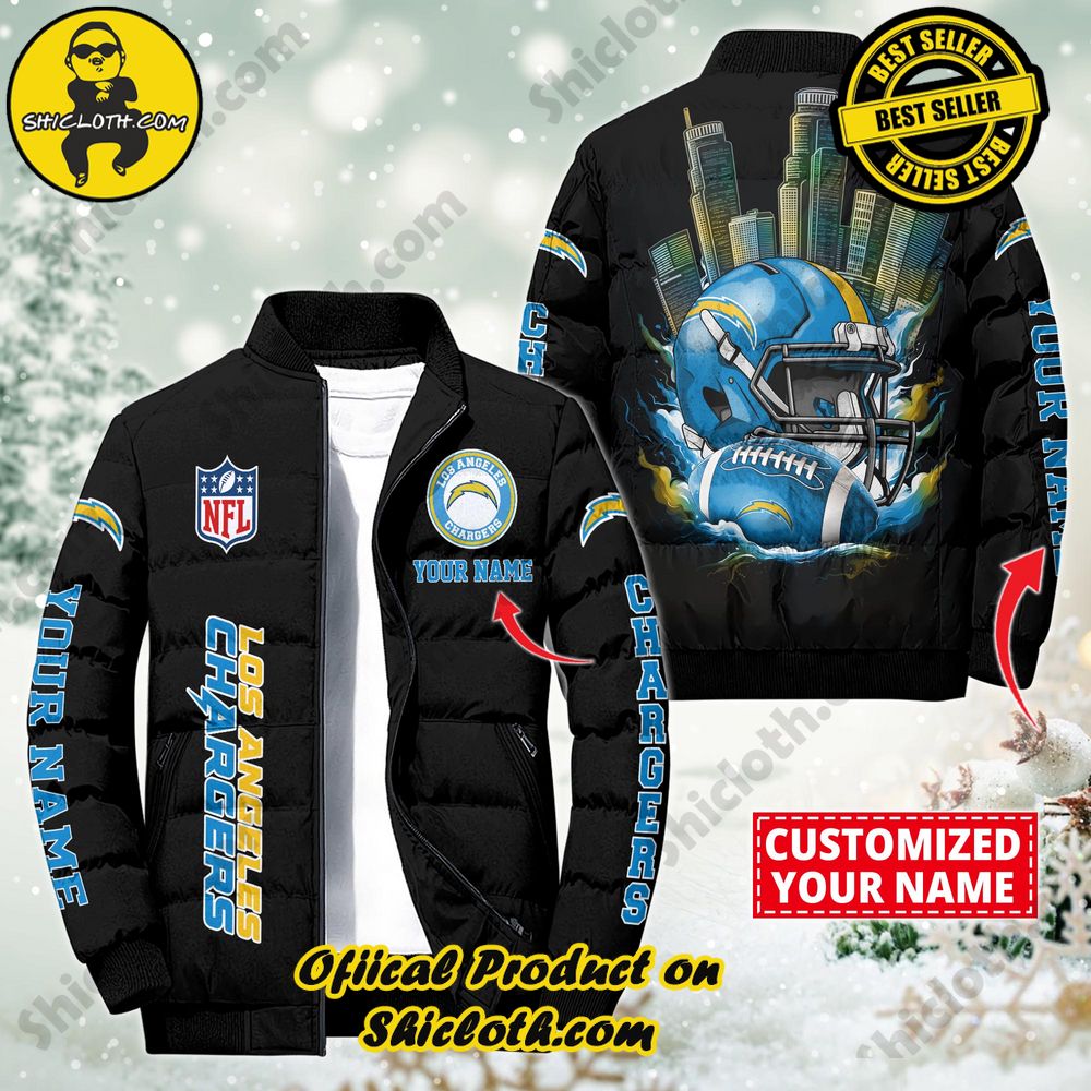 Product Information : NFL Los Angeles Chargers City Puffer Jacket Custom Name New Arrivals