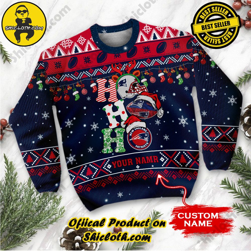 NFL New England Patriots Ho Ho Ho Custom Name Ugly Christmas Sweater