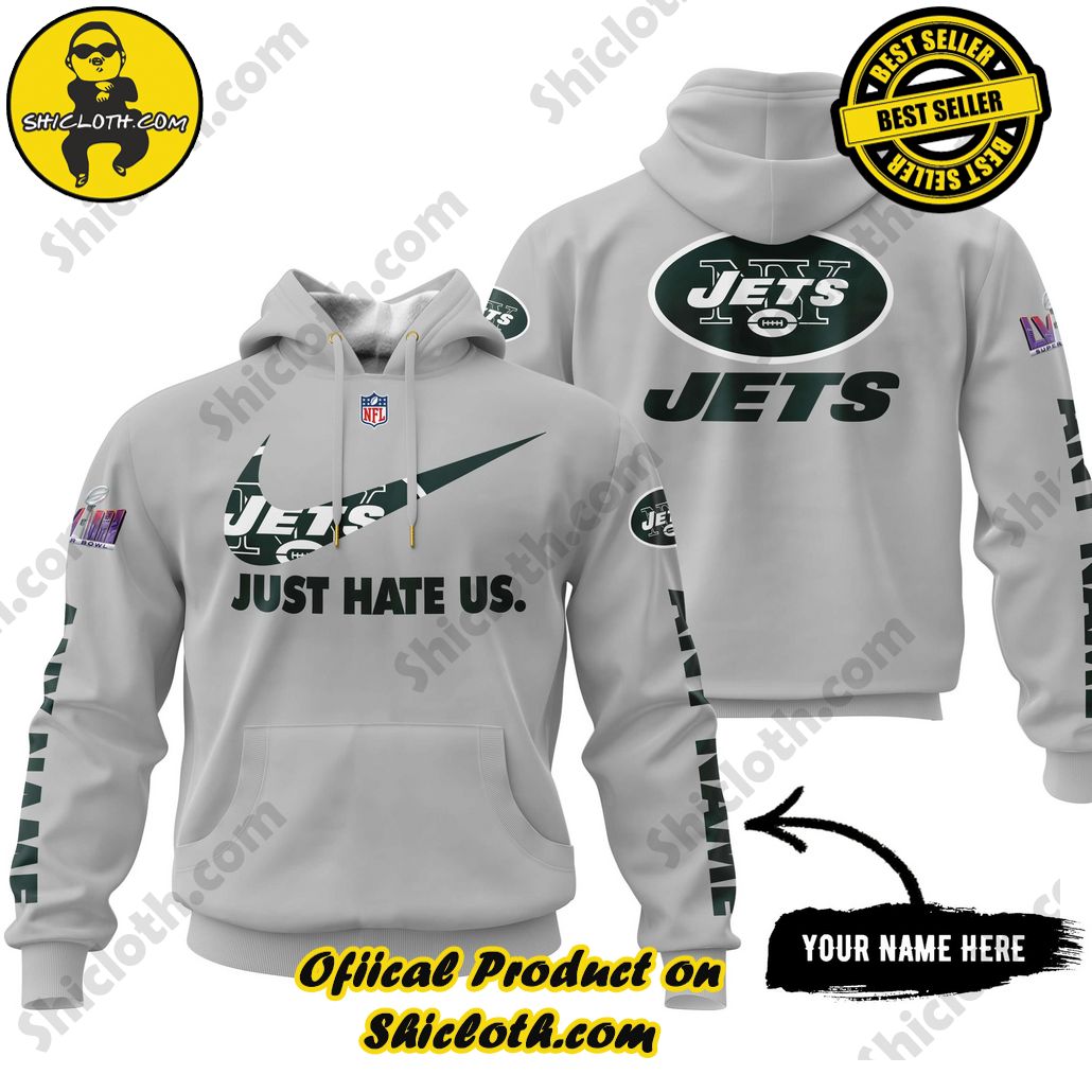 Product Information : NFL New York Jets Nike Just Hate Us Custom Name 3D Hoodie