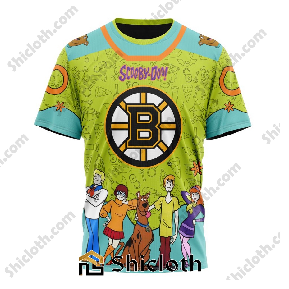 This shirt is designed to be both fashionable and comfortable, allowing fans to cheer on the Boston Bruins in a fun and stylish way. Made from high-quality materials, it is durable and fits both men and women perfectly. The combination of Scooby-Doo’s signature cuteness with the Boston Bruins logo creates a standout piece that is perfect for game days, casual outings, or just relaxing at home while watching the game.