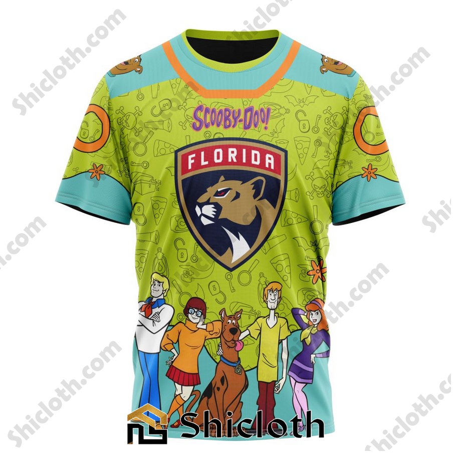 This shirt is designed to be both fashionable and comfortable, allowing fans to cheer on the Florida Panthers in a fun and stylish way. Made from high-quality materials, it is durable and fits both men and women perfectly. The combination of Scooby-Doo’s signature cuteness with the Florida Panthers logo creates a standout piece that is perfect for game days, casual outings, or just relaxing at home while watching the game.