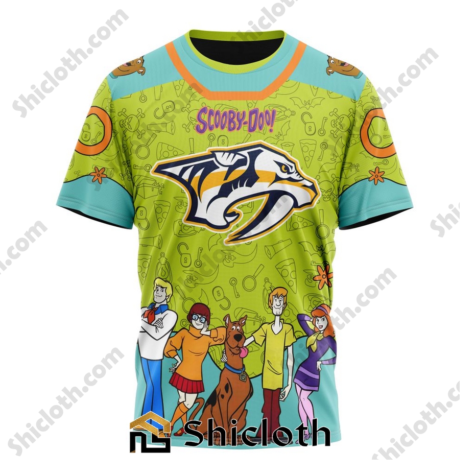As you all know, the intersection of sports and popular culture often brings unique and exciting experiences. Here is a great combination of two beloved icons – Scooby-Doo and the Nashville Predators. This special shirt not only shows your support for one of the most exciting teams in the American Professional Hockey League, but also brings a cute and charming touch to your game-day outfit.