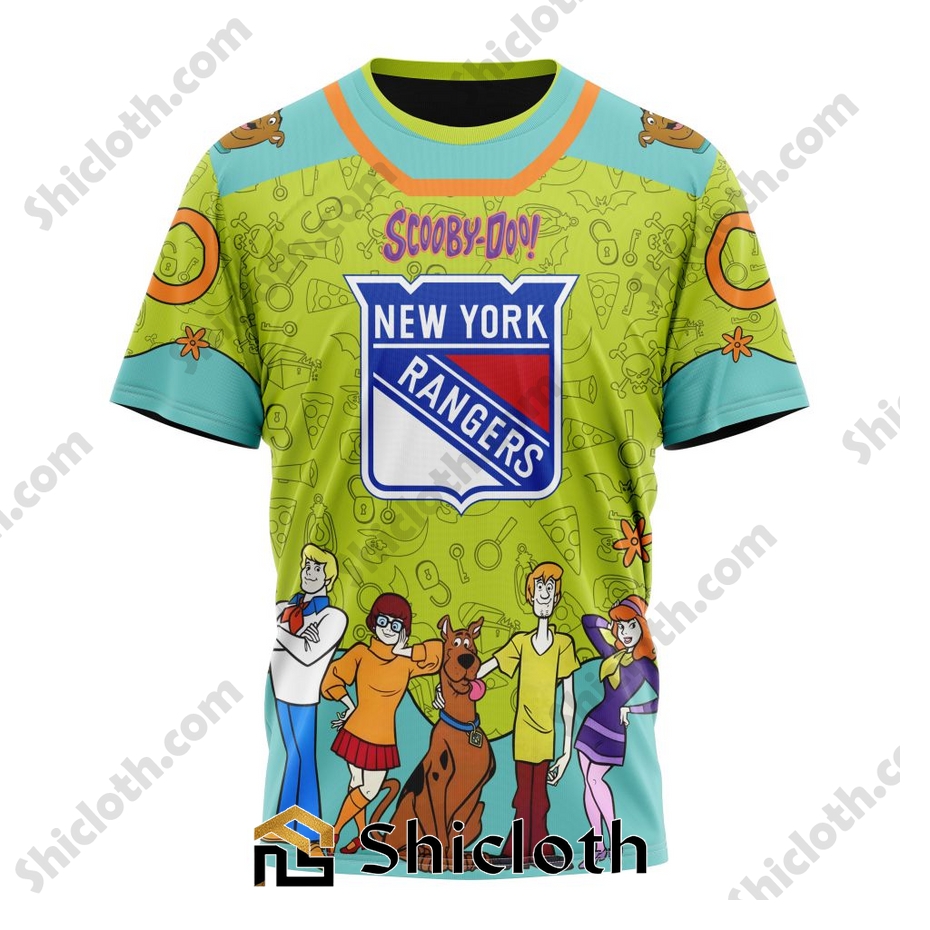 This shirt is designed to be both fashionable and comfortable, allowing fans to cheer on the New York Rangers in a fun and stylish way. Made from high-quality materials, it is durable and fits both men and women perfectly. The combination of Scooby-Doo’s signature cuteness with the New York Rangers logo creates a standout piece that is perfect for game days, casual outings, or just relaxing at home while watching the game.