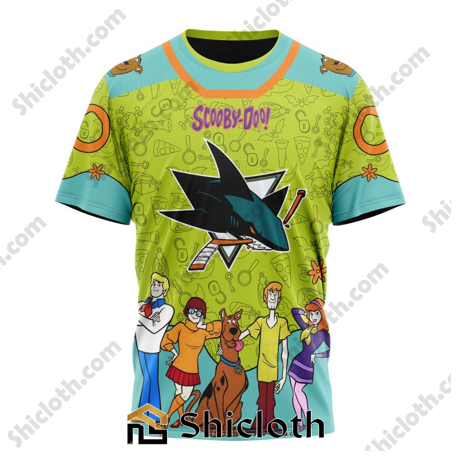 This shirt is designed to be both fashionable and comfortable, allowing fans to cheer on the San Jose Sharks in a fun and stylish way. Made from high-quality materials, it is durable and fits both men and women perfectly. The combination of Scooby-Doo’s signature cuteness with the San Jose Sharks logo creates a standout piece that is perfect for game days, casual outings, or just relaxing at home while watching the game.