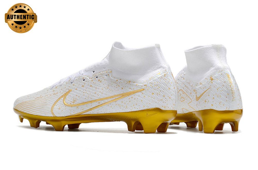 Introducing the Nike Air Zoom Mercurial Superfly IX Elite FG WG, the ultimate soccer cleats designed to give you the edge on the field. These premium cleats are made in the USA with the highest quality materials and craftsmanship to ensure top performance and durability. The Flyknit upper provides a snug and supportive fit, while the Dynamic Fit collar offers a seamless connection between your foot and the shoe for maximum agility and speed. The responsive Nike Air Zoom cushioning in the heel delivers unrivaled comfort and support, allowing you to focus on your game without any distractions.