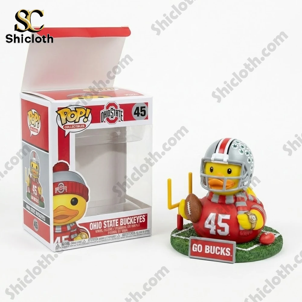 The Ohio State Buckeyes Go Bucks Football Rubber Duck is the ultimate collectible for any fan looking to bring a piece of the stadium home. This intricately designed figure combines the playful charm of a rubber duck with the high-stakes energy of college football, featuring a vibrant red jersey, a realistic silver helmet with leaf decals, and a miniature championship ring on its wing.