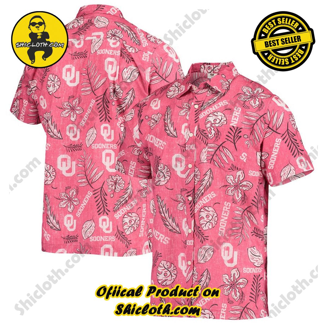 Best Places to Buy Oklahoma Sooners Crimson Vintage Floral Button-Up Hawaiian Shirt Online: