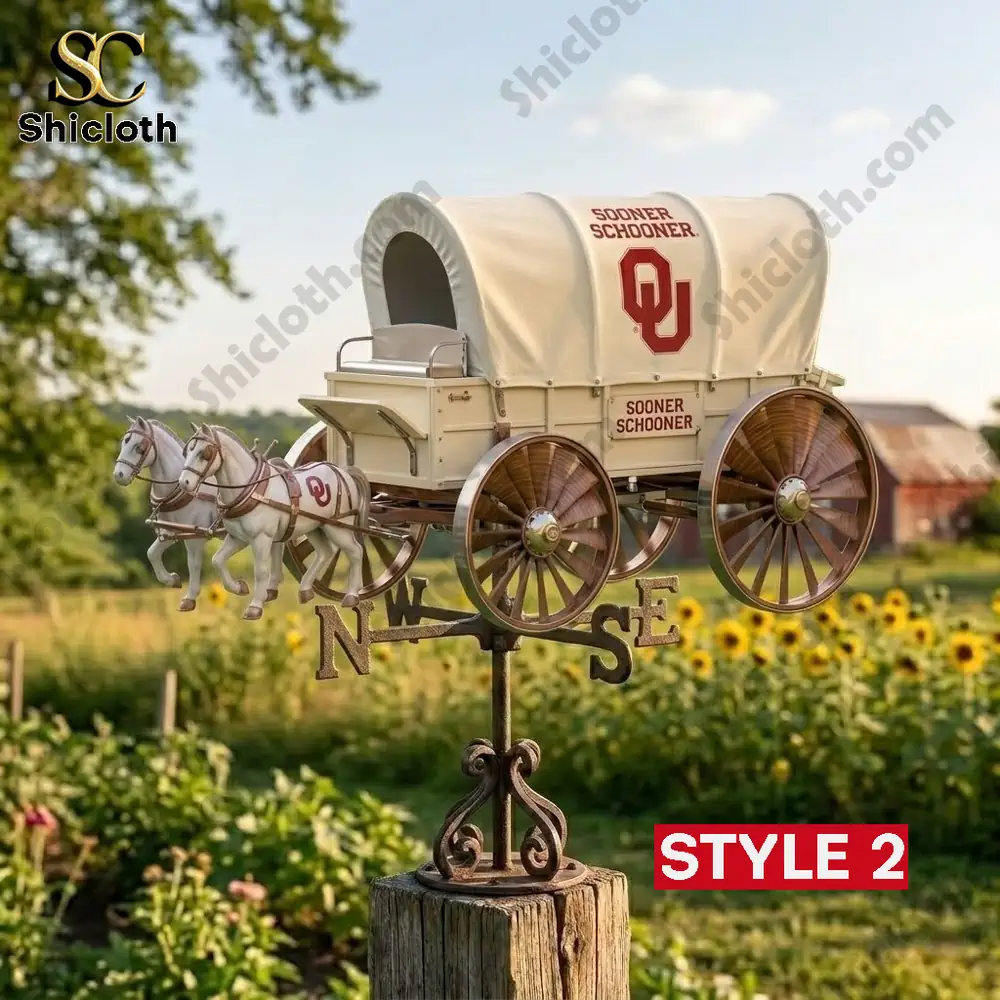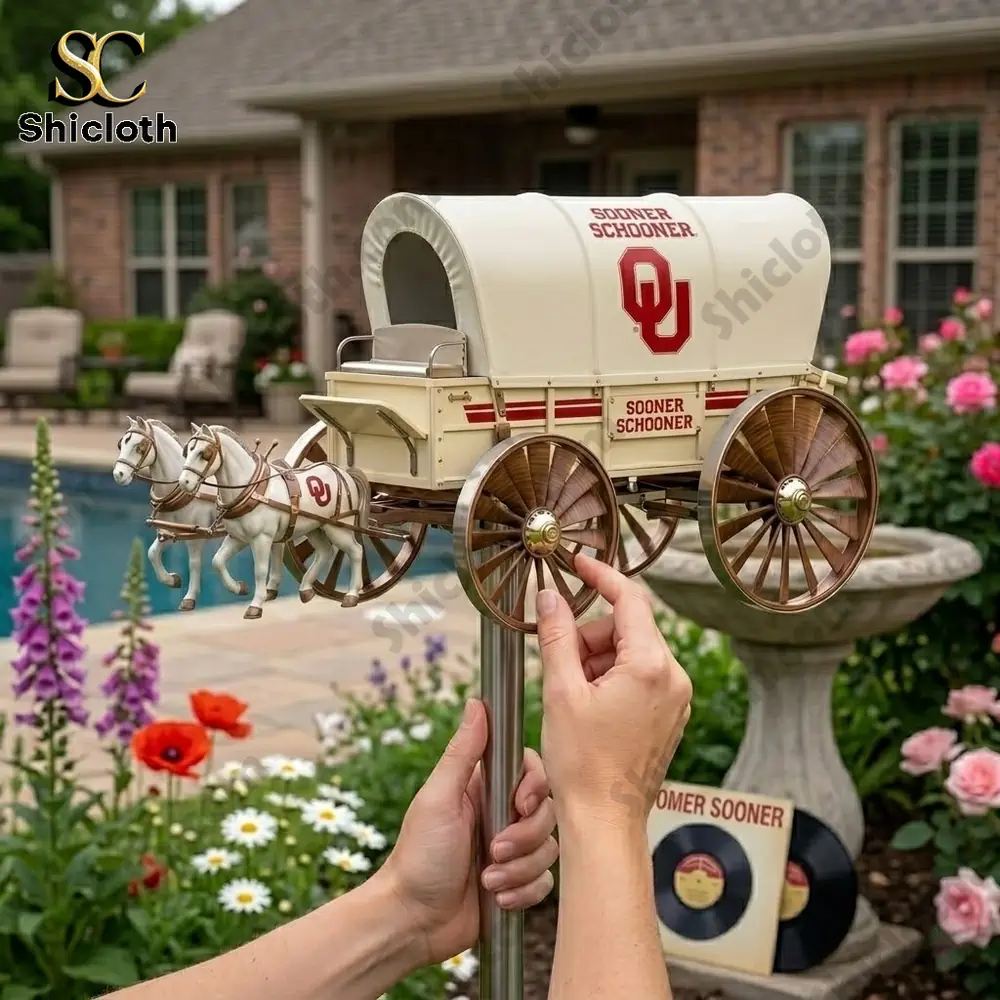 The Oklahoma Sooners Schooner Custom Wind Spinner For Garden is the ultimate outdoor tribute for fans who want to combine Sooner pride with a classic aesthetic. This meticulously designed garden ornament captures the spirit of the iconic Boomer Sooner tradition, featuring a detailed covered wagon that rotates gracefully with the breeze. Whether you are decorating a sprawling backyard or a cozy patio, this wind spinner serves as a durable, eye-catching centerpiece that celebrates University of Oklahoma heritage in a sophisticated way.