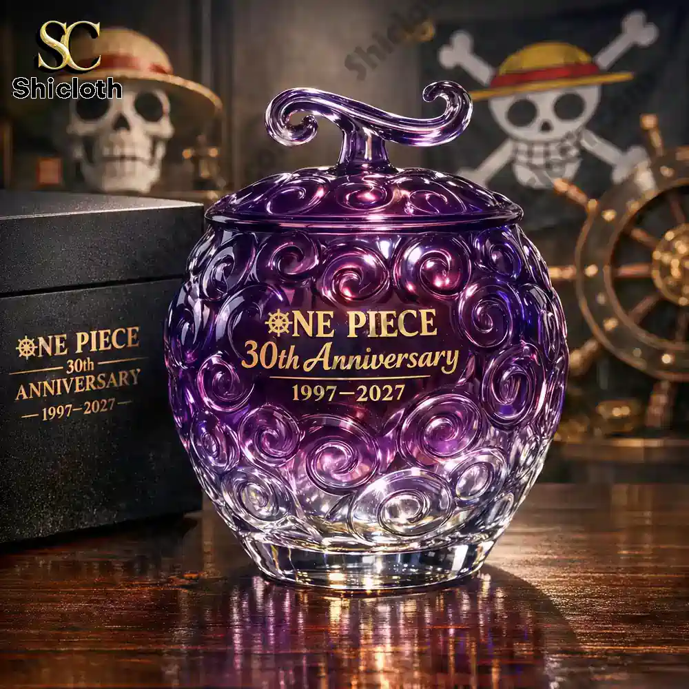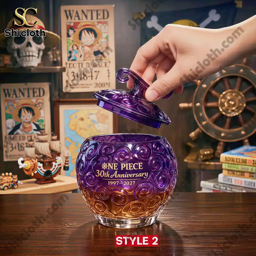 This collection offers distinct visual styles to suit every fan’s taste. Style 1 and 3 feature the iconic Thousand Sunny ship, boasting a 3D-textured golden figurehead that “sails” over vibrant, deep blue ocean waves embossed at the base of the glass. In contrast, Style 2 is shaped like the Gomu Gomu no Mi Devil Fruit, featuring a stunning deep purple hue with intricate swirl patterns and a matching removable lid with a curved stem handle. Each glass is finished with high-quality dye-sublimation printing, displaying the “One Piece 30th Anniversary” gold lettering and the 1997-2027 commemorative dates prominently on the front. Crafted from thick, high-clarity crystal glass, these 11-15oz vessels provide a satisfying weight and a luxurious hand-feel that enhances the tasting experience.
