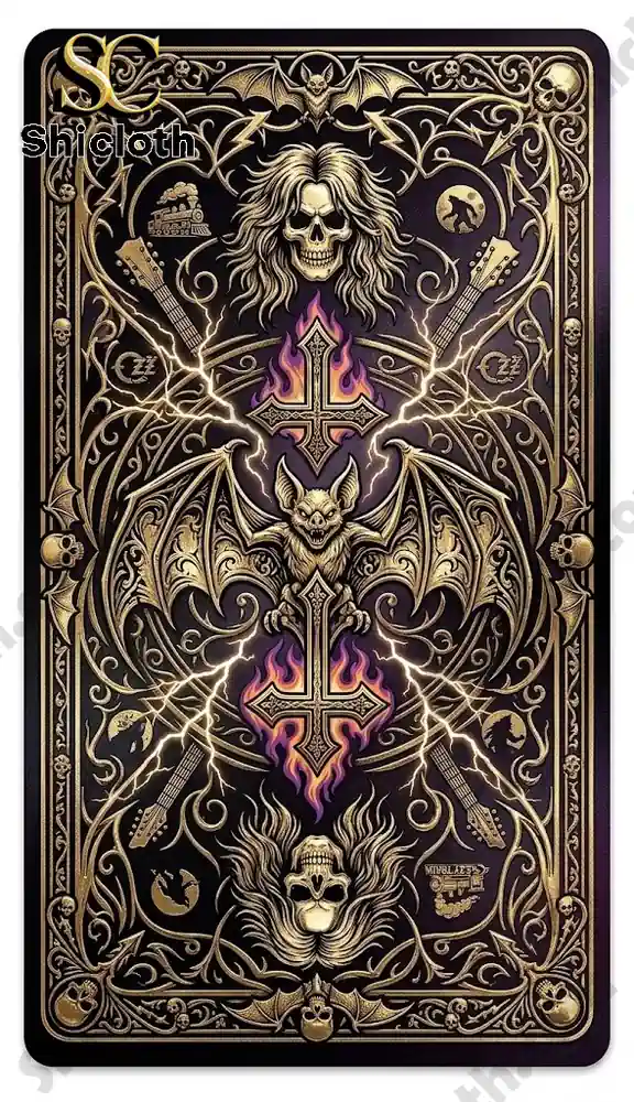 The visual storytelling in this deck is incredibly dense, featuring intricate skull and bat motifs bordering every card. You will find hidden nods to Ozzy’s career, such as the “Crazy Train” locomotive on the Chariot card and the “Bark at the Moon” werewolf appearing in the Moon card. Each detail is strategically placed; for instance, the The Sun card shows Ozzy seated on a throne of silver records under a smiling, radiant sun, symbolizing his massive success. The cards are crafted from premium 350gsm cardstock with a smooth matte finish, ensuring they are durable for daily shuffling while preventing glare during readings. The gold-leaf style lettering for the titles and numbers adds a touch of “Prince of Darkness” luxury, making the deck feel like a relic from a metal vault.