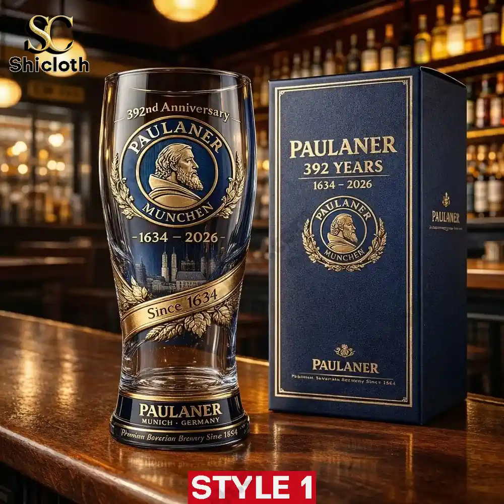Celebrate nearly four centuries of brewing tradition with the Paulaner 1634-2026 392th Anniversary 3D Relief Pint Glass. This collector’s item features a stunning multi-layered embossed design that brings the history of Munich’s famous brewery to life right in your hand. Whether you prefer the sleek elegance of Style 1 or the ornate detail of Style 2, these glasses are crafted from heavy-duty reinforced glass and come in a premium matching gift box, making them the ultimate centerpiece for any home bar or beer enthusiast’s collection.