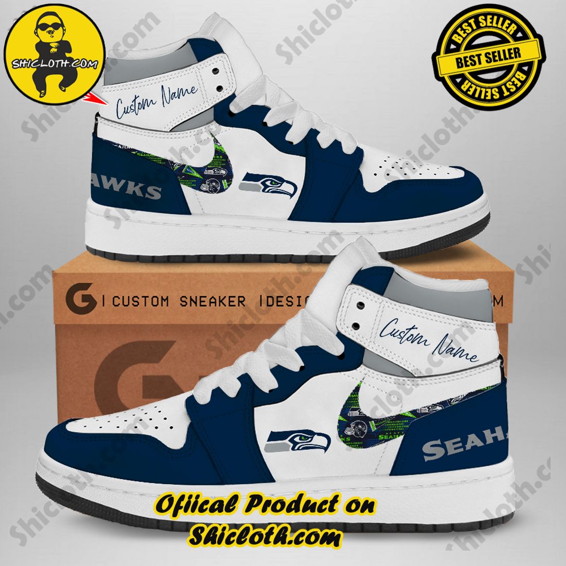 Introducing the highly anticipated Personalized NFL Seattle Seahawks Nike Air Jordan 1 Sneaker – the ultimate blend of style, comfort, and team pride! If you’re a die-hard Seahawks fan who also demands top-notch quality, then look no further. Our sneakers are not just your average pair of shoes; they are a symbol of your unwavering support for the Seattle Seahawks, the sport’s legends from the United States.