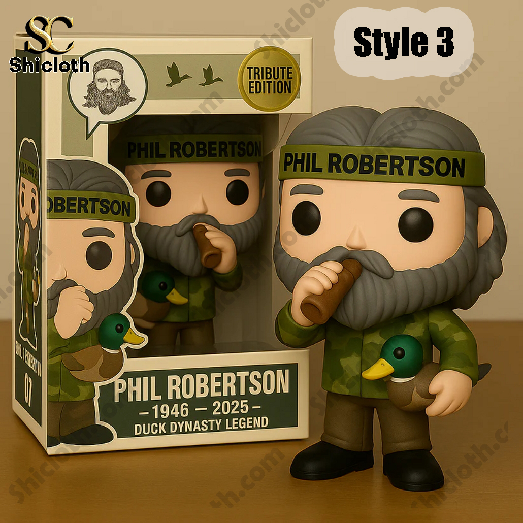The Phil Robertson 1946–2025 Pop Figure Doll is a heartfelt tribute to the legendary patriarch of the Robertson family and star of the hit TV show Duck Dynasty. This collectible figure honors Phil Robertson’s remarkable legacy, capturing his iconic look and personality in a high-quality, detailed pop figure. A must-have for fans of the show, Duck Commander products, or anyone who admires Phil’s down-to-earth wisdom and larger-than-life character.