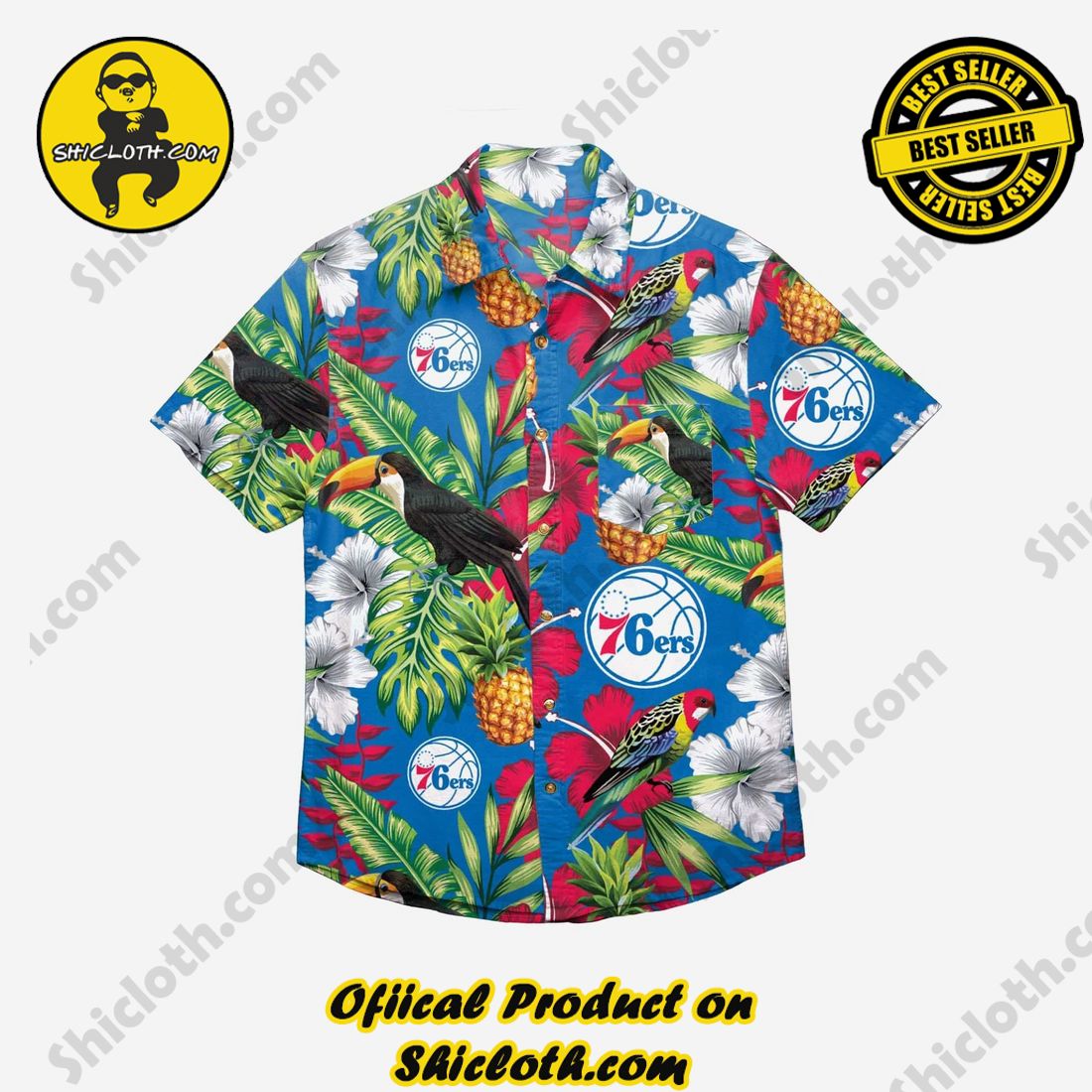 Overview of the Philadelphia 76ers Floral Button Up Shirt: