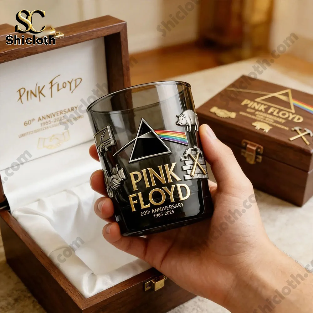 This anniversary edition stands out due to its heavy-duty glass material and the intricate metallic accents that wrap around the body. The “Pink Floyd” logo is embossed in a bold gold finish, positioned perfectly above the 60th-anniversary script. For those who value longevity, it is essential to hand wash only using mild soap and a soft sponge to preserve the delicate 3D textures and the clarity of the tinted glass. Storing the glass upright in its premium wooden display box not only protects it from dust but also highlights the “Wall” hammers and “Animals” pig motifs that make this set a centerpiece for any home bar.