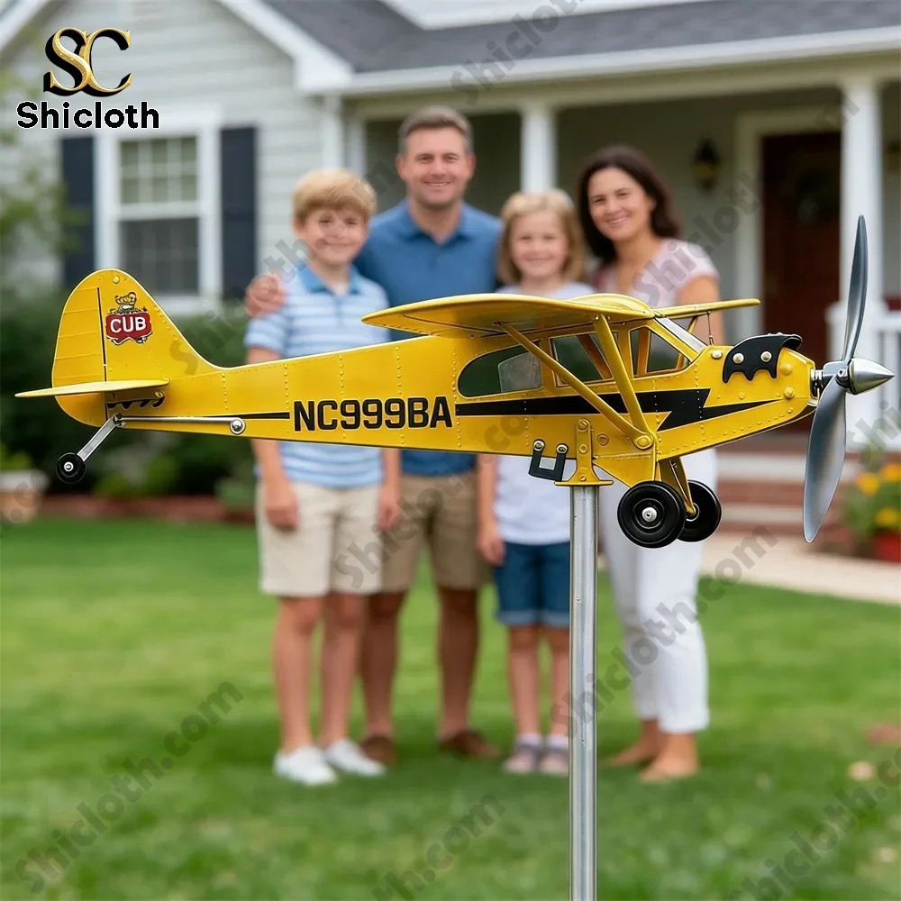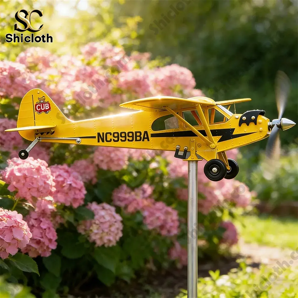 Piper Cub Vintage Metal Airplane Wind Spinner For Garden