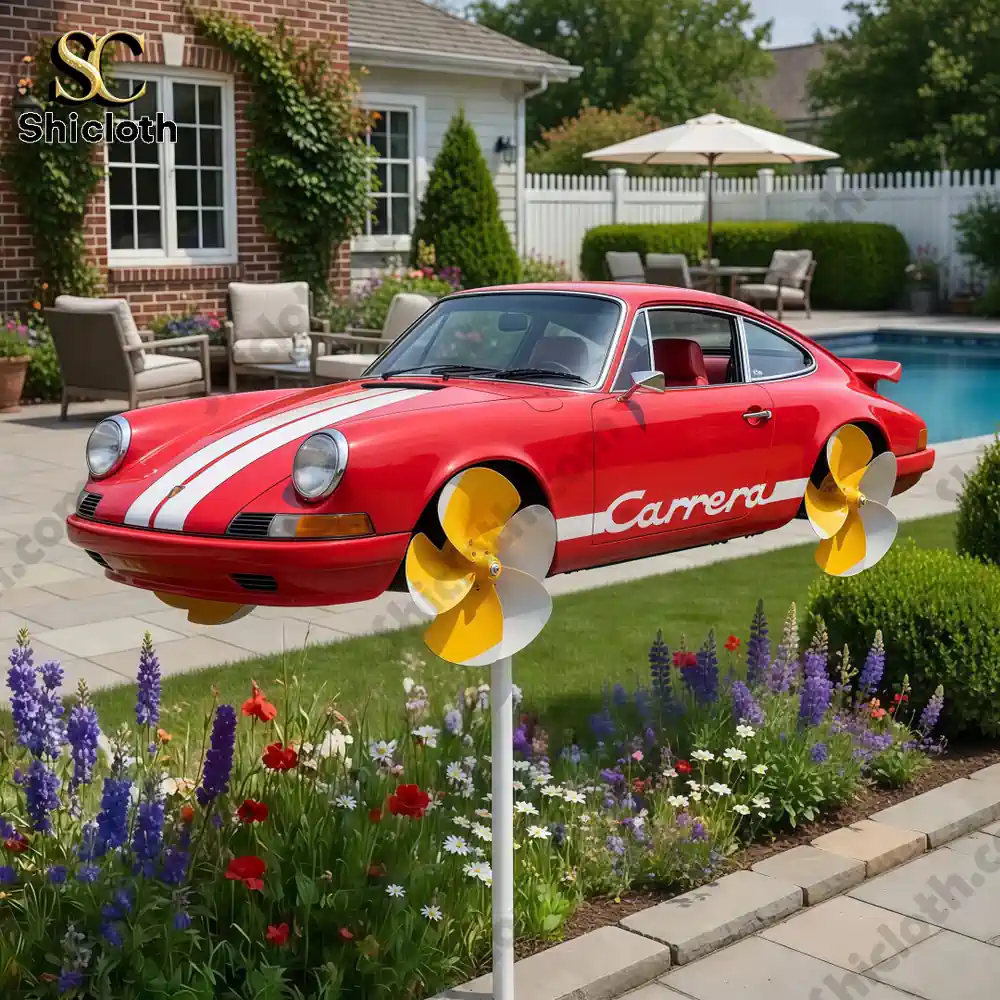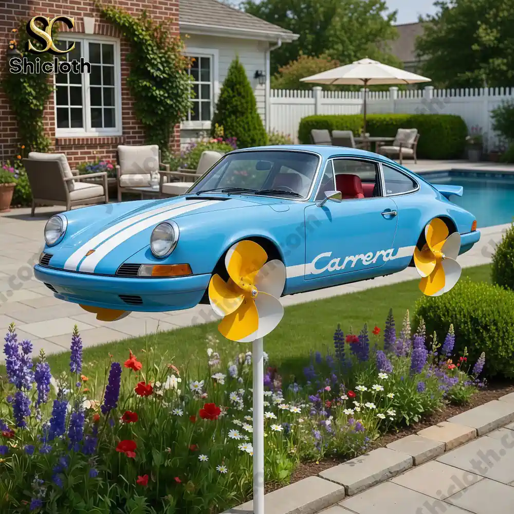 This kinetic art piece is the ideal gift for automotive collectors or anyone who appreciates the “Classic Style” of European engineering. It transforms a standard backyard into a personalized gallery, reflecting the owner’s taste for speed and elegance. To keep your spinner in top condition, we recommend a simple wipe-down with a damp cloth once a season to remove pollen or dust. Because it stands on a slender, adjustable stake, it integrates seamlessly into existing garden layouts without overshadowing your plants. This product represents a rare intersection of mechanical art and horticultural charm, making it a must-have for those who believe a garden should be as fast-paced as it is peaceful.