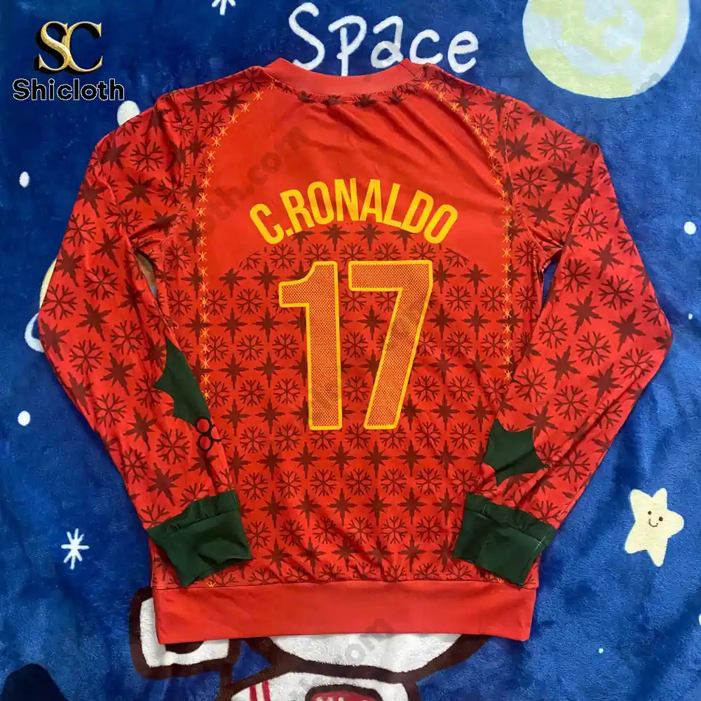 Portugal Football Cristiano Ronaldo 17 Christmas Jumper is a perfect addition to any wardrobe. Wear it on its own or layer it under a blazer or jacket for a stylish look. Made from a lightweight fabric, it’s ideal for everyday comfort.