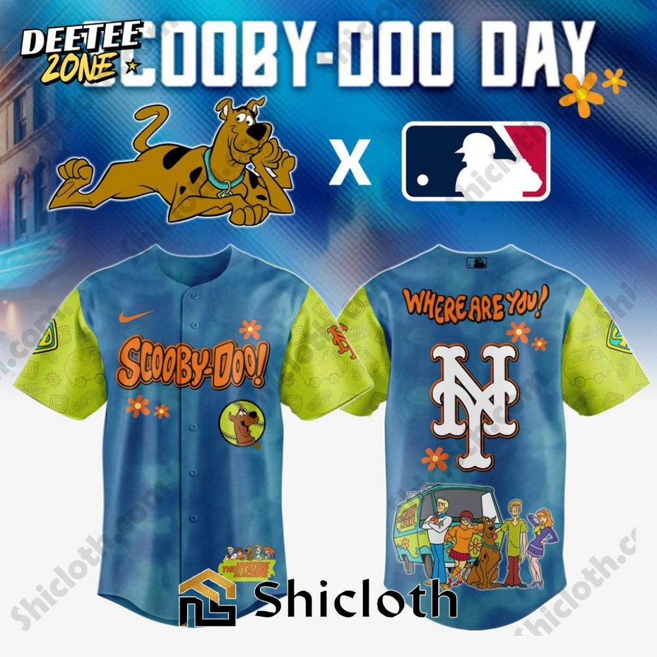 Zoinks! Mets fans, get ready to solve the mystery of ultimate fan style with our limited-edition New York Mets x Scooby-Doo Baseball Jersey! This officially licensed jersey blends the electrifying energy of Mets baseball with the lovable spookiness of the Scooby-Doo gang. Featuring vibrant team colors, custom artwork showcasing Scooby, Shaggy, and the crew alongside Mets logos, this jersey is a guaranteed home run at Citi Field or any Mets watch party.
