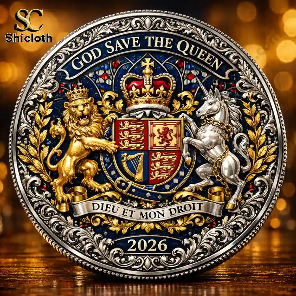 The Style 1 coin features a contemporary portrait of Her Majesty in her later years, adorned with a sparkling crown and royal sash, set against the backdrop of Big Ben and Westminster Abbey. In contrast, Style 2 showcases a youthful portrait surrounded by iconic symbols of her reign, including a vintage red bus, the “God Save the Queen” slogan, and images of the coronation era. Both versions are crafted from a high-quality zinc alloy with antique silver plating, ensuring a heavy, premium feel in the hand. The edges are precision-milled, and the surfaces are coated with a protective layer to prevent oxidation, keeping the brilliant blue and red enamel accents vivid for years to come.