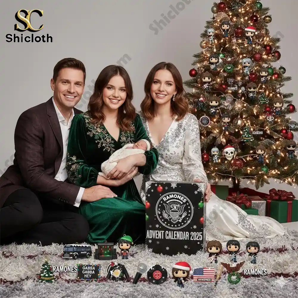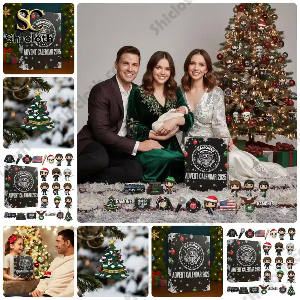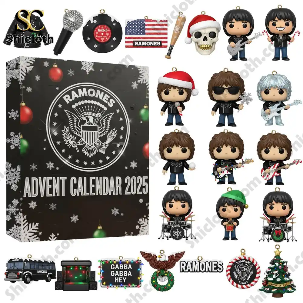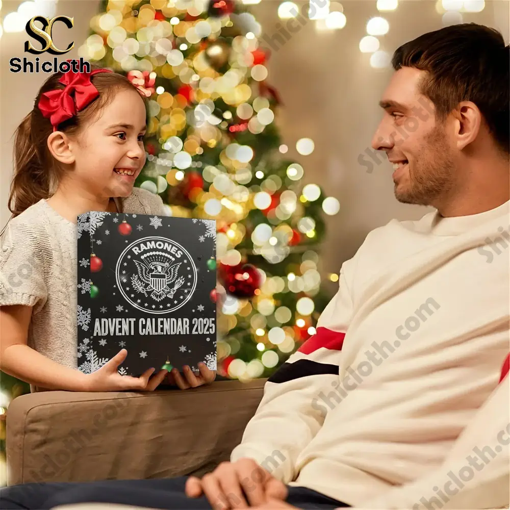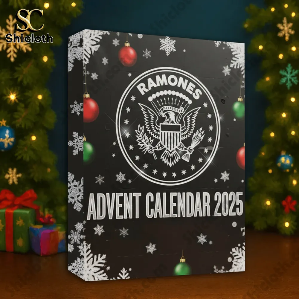 Hey! Ho! Let’s Go! Get ready to countdown to Christmas with pure punk rock attitude. The Ramones Advent Calendar 2025 is the ultimate holiday collectible for any true music fan. The packaging is pure rock and roll: a sleek, jet-black box that screams cool, framed by a festive border of white snowflakes and classic red and green Christmas ornaments. Front and center is the iconic Ramones Presidential Seal Logo rendered in crisp white, complete with the names of the original members and the “Hey Ho! Let’s Go!” banner—a true symbol of punk rock history.