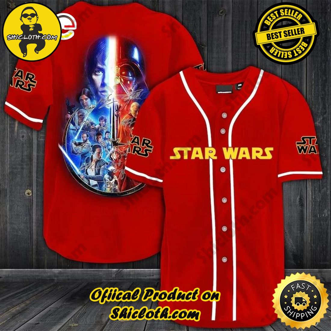 From the grand stadiums to the cozy neighborhood ballparks, the sight of fans proudly sporting their team’s colors is a testament to the deep connection between baseball and its enthusiasts. Whether you’re a seasoned baseball aficionado or a newcomer to the game, an MLB jersey is a timeless symbol of unity and camaraderie.Red Star Wars Baseball Jersey Shirt Each jersey tells a unique story, emblazoned with the team’s emblem, colors, and player numbers. From the storied franchises with decades of championship victories to the up-and-coming teams ready to make their mark, every MLB jersey carries a legacy.