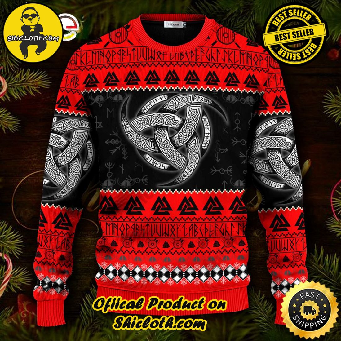 Red Triple Horn Pattern Viking Ugly Christmas Sweater For Men & Women Christmas Gift Sweater